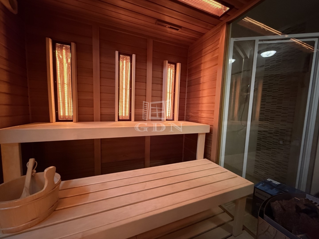 • kombinált finn–infra szauna zuhanyzóval