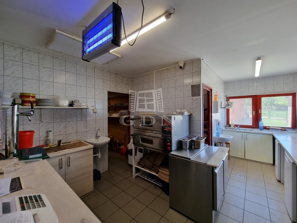 ‣ ~45m2 konyha/büfé (térkövezett terasz kerti bútorokkal, ernyőkkel, sütögetővel)