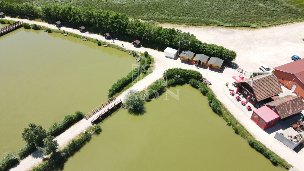 Az összesen ~32.000m2 terület 3 hrsz számból áll melyből 18.000m2 a horgásztó (vízfelület kb. 16.300m2 + 1500m2 halnevelde). A további 14.000m2 telekterületen pedig a halőrház/iroda és a konyha/büfé, a rendezvényház, a raktár épület, felépítmények találhatók.
