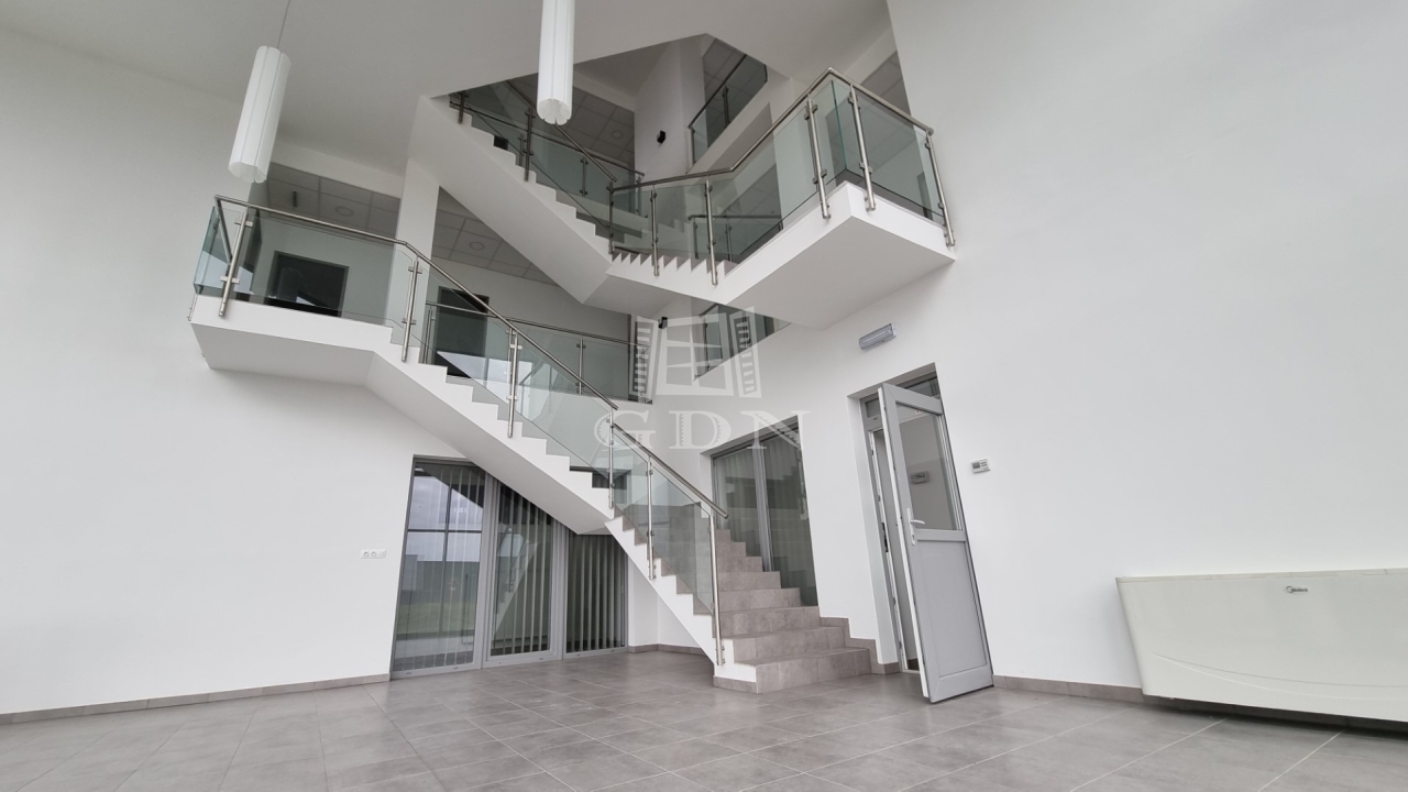 ‣ irodaépület: üveg homlokzat, automata tolóajtó, minden szinten teakonyha, női-férfi mosdó