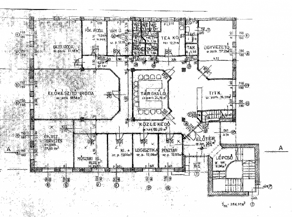 Elosztását tekintve 4 önálló irodahelyiségből és 1 ablaktalan raktárból/tárgyalóból áll.