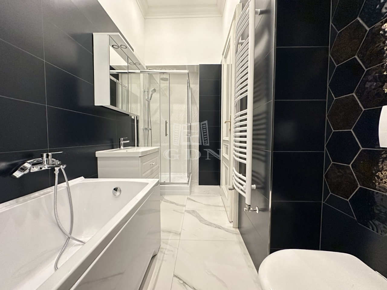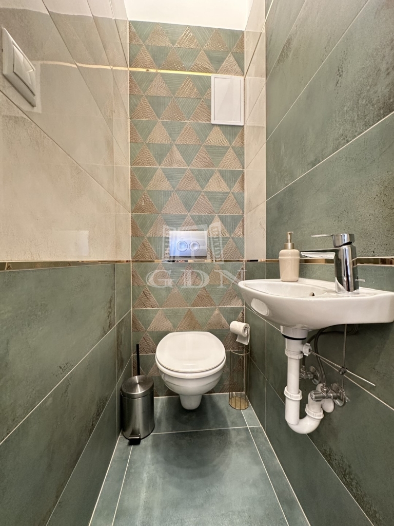 A modern konyha minden fontos géppel felszerelt. A beépített szekrények minőségi anyagból készültek, maximális kihasználtsággal lettek a lakásba tervezve. A nagy méretű, ablakoknak köszönhetően a helyiségek nagyon világosak. A dohányzás és a háziállat tartása nem lehetséges. Parkolás az épület mögött fizetős övezetben megoldott.