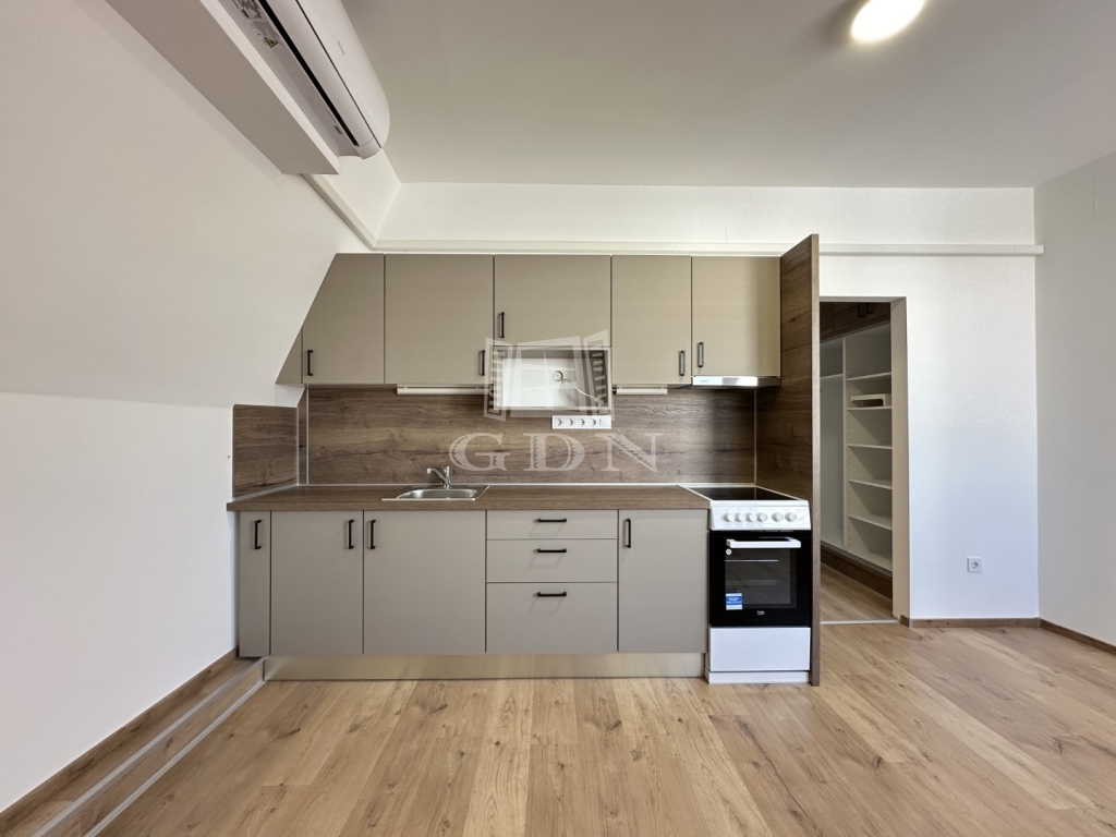 BL-004147. Belvárosban, társasházban 2. emeleti, 33 m²-es, amerikai konyhás nappali + 1 szoba elosztású, klimatizált, tégla, teljes körűen felújított, távfűtésű, üres lakás hosszútávra, azonnali költözéssel kiadó.