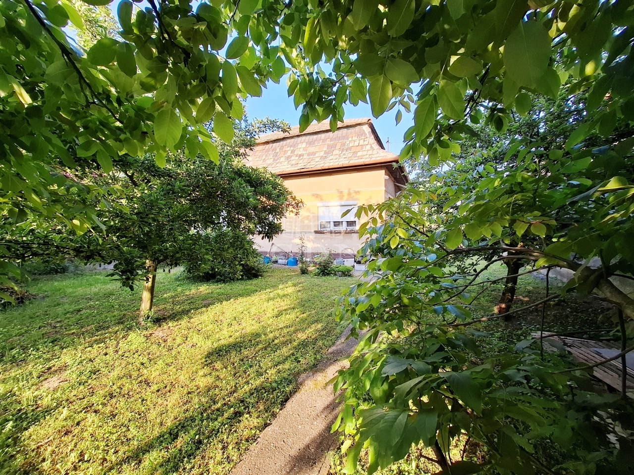 A kertben gyümölcsfák teremtenek idilli környezetet, és otthont adnak a madaraknak, egy igazi természetközeli menedék, ahol a nyugalom mindennapos.