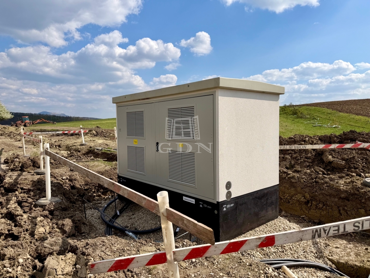 ÁRAM: a terület villamos energiával való ellátása folyamatban. A vállalkozási szerződés Elmű Hálózat Kft-vel aláírva, a vállalkozói díj kifizetve. Minden telken 1X32 Amper ellátottság lesz. Tervezés befejezve, az engedélyt várja a Tulajdonos. Várható készültség: 2026 tavasz
