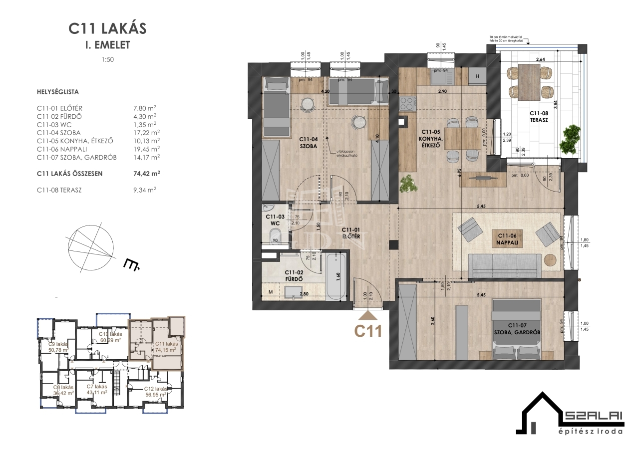 | 74 m2Alapterület | 3 Szoba |